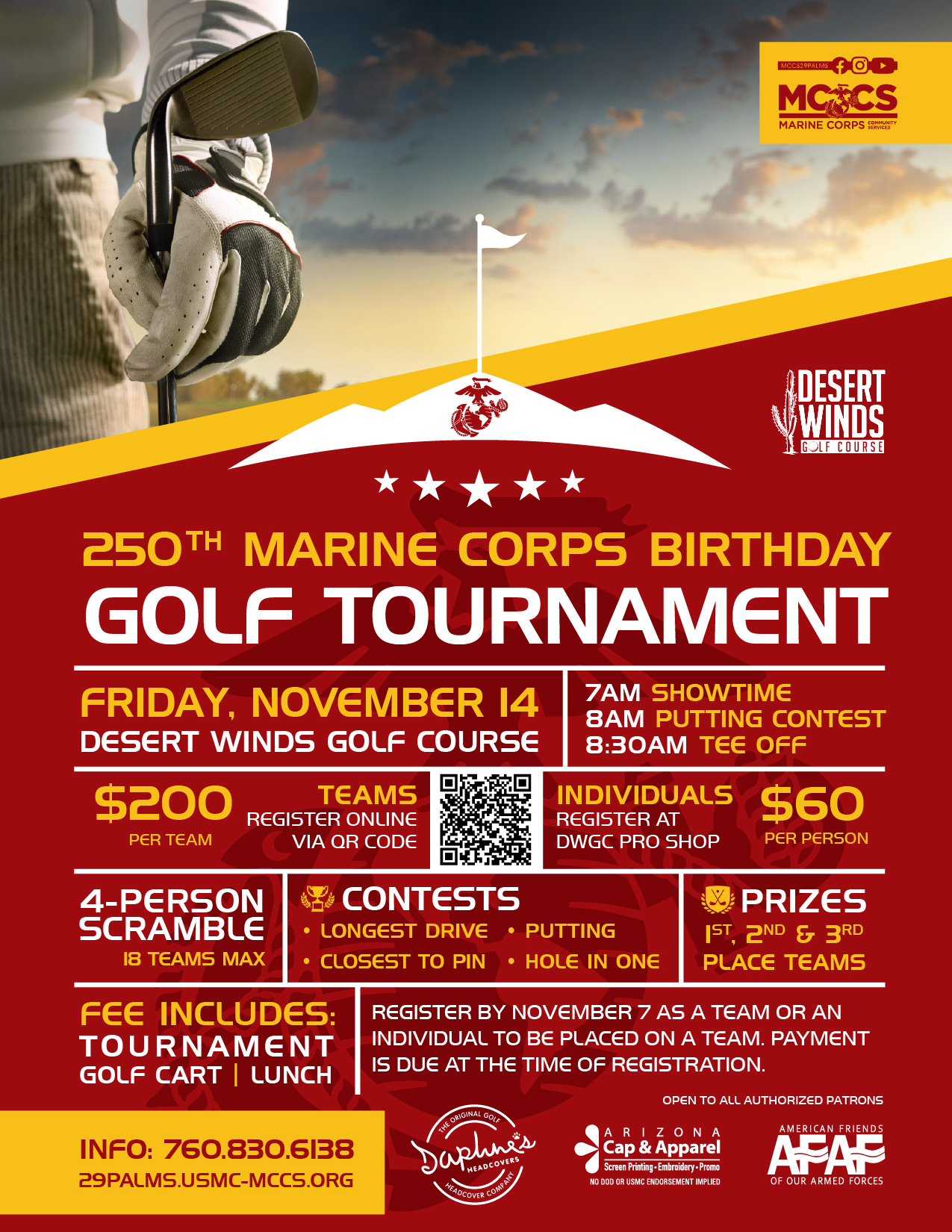 Celebrate the 250th Marine Corps Birthday at Desert Wind Golf Course's annual birthday tournament.